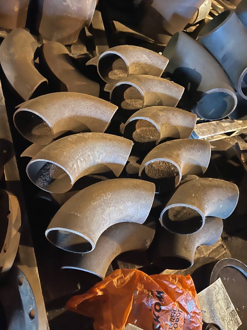 Тройники: 373х7-159х5 - 7шт 325х14 - 273х12 - 3шт 38х3 - 20шт 57х5 - 181шт 273х10 - 3шт 159х6-108х5-4шт 159х6 -8шт 159х12 - 10шт 159х7-108х5-50шт 133х7-108х5-100шт 133х6-89х4-200шт 377х10-273х7-2шт Переходы: 426х12-273х10 - 3шт 273х7-159х6 - 8шт 426х10-325х8 - 4шт 273х8-219х8 - 5шт 325х8-273х8 - 6шт 273х18-219х16 - 4шт 325х10-219х8 нж-5шт 530х8-325х8 - 10шт 377х12-325х10 - 6шт 530х12-325х10 - 4шт 530х12-377х10 - 4шт 426х12-377х12 - 4шт 273х10-159х8 - 5шт 325х10-159х6 - 4шт 325х10-273х10-8шт 530х12-325х10-4шт 530х12-377х10-4шт 377х10-325х10 - 4шт 426х12-377х10 - 4шт 377х16-159х8 - 2шт 325х12-159х8-4шт 377х12-273х10-8шт 426х14-377х14-6шт Отводы: 108х6 - 100шт 108х8 - 100шт 108х10 - 80шт 89х8 - 80шт 57х6 - 300шт 76х6 - 80шт 159х5 - 30шт 159х6-100шт 159х5-70шт 219х9-10шт 273х10-6шт 377х12-2шт 325х14-6шт 325х18-5шт 219х7-15шт 219х16-6шт 273х8-35шт 219х10-40шт 133х6-10шт 133х10-20шт 219х5-20шт 219х6-20шт 219х12-10шт 159х13 15х5м 180гр - 13шт 325х10-2шт 377х9-3шт 325х12-20шт 273х12-10шт 159х8-150шт 108х7-100шт 273х14-10шт 89х8-30шт 89х5-100шт Список представлен не весь, также есть изделия из нержавеющей стали: Отводы нержавеющие (12х18Н10Т) 38х3,5 - 30шт 57х3,5 - 20шт 108х6 - 19шт 89х6 - 20шт 89х3,5 - 13шт 133х6 - 3шт 159х10 - 6шт (10х17н13м2Т) Переходы нержавеющие 530х20-426х16-4шт 08х18н10т 630х10-426х10-3шт 08х18н10т 530х12-426х10-3шт Тройники нержавеющие 325х12-1шт 377х22-3шт 426х13 -3шт 426х12-219х8-18шт Ориентировочный объем всех деталей около 60 тонн Опт приветствуется