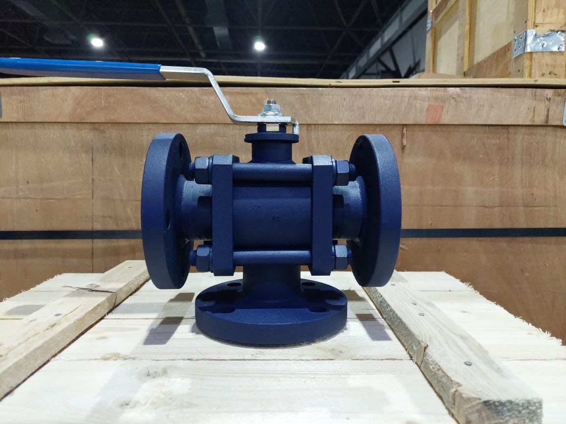 Куплю как на фото Кран шаровый трехходовой фланцевый ст.20 Ду100 ру16 цена и фото