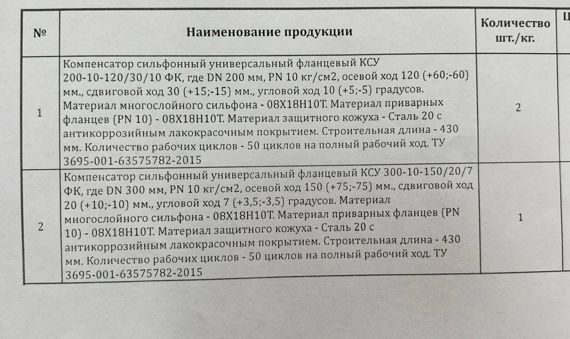 Компенсаторы сильфонные фланцевые универсальные КСУ 300 1штуку