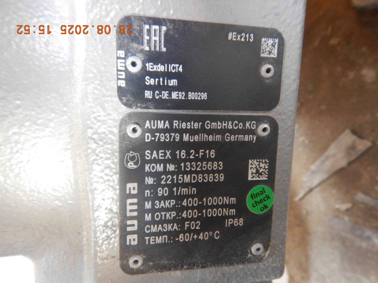 Электропривод AUMA SARVEХ 07.6/ACVEХC 01.2/LE 25.1 – 2 шт. по 180000р.
