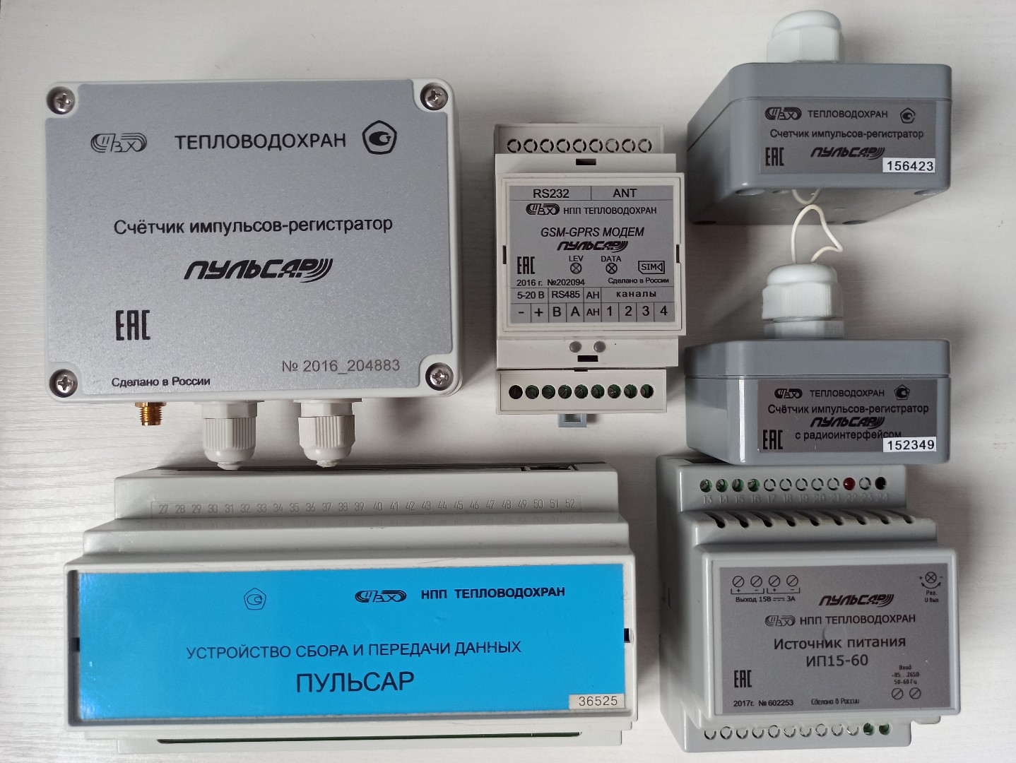 АСКУВТ "Пульсар" пр-во "Тепловодохран": счетчики импульсов-регистраторы, GSM-GPRS модем, УСПД, ИП