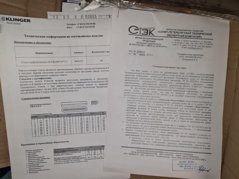 Стекло смотровое Клингера Размер 7 280*34*17.