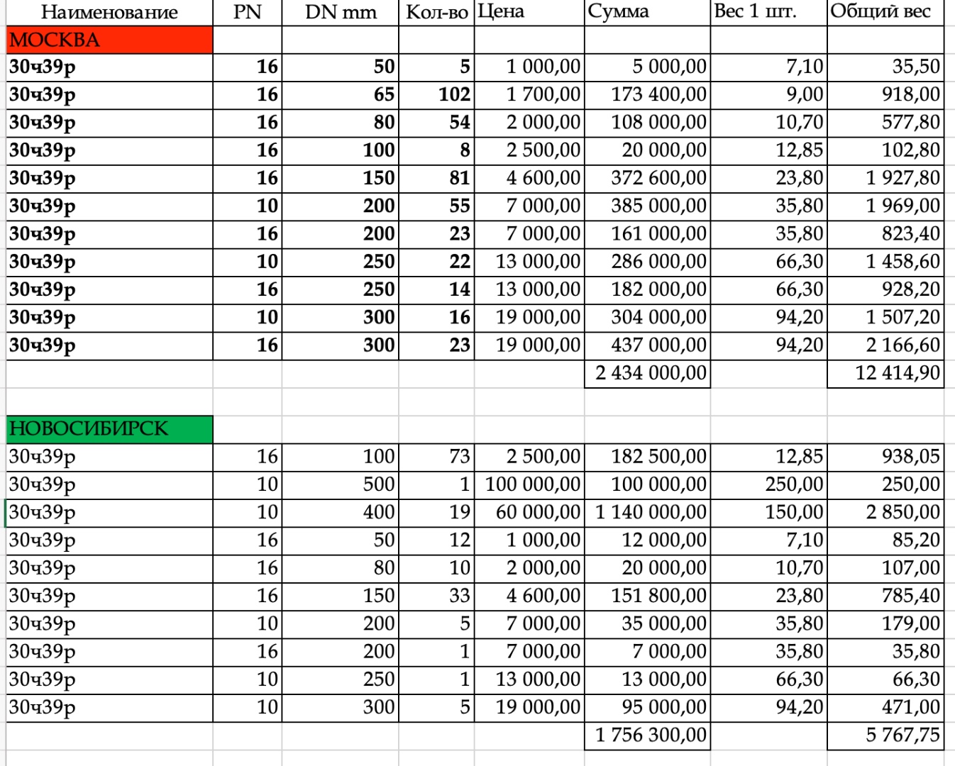 Реализуем из наличия со склада в Москве задвижки 30ч39р Ду50,80,100 Ру16 (Т75*С и Т150*С) и Ду150,200,250,300 Ру10 Т75*С, новые, с паспортами.