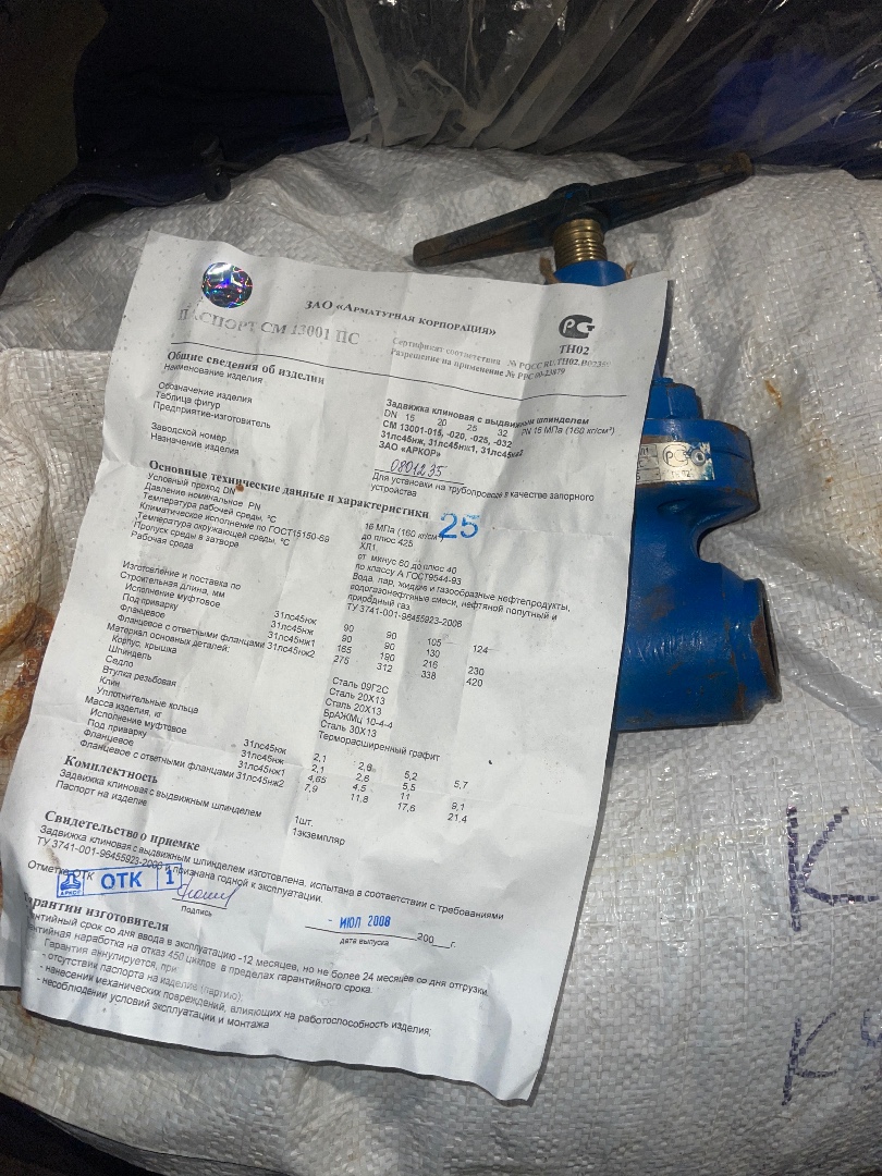 Вентиль ВМ 15лс57бк.2 20х160 ст.15Х5М 512 шт. Клапан 19нж10бк 50х160 фл. 13 шт. Клапан 19нж10бк 80х160 8 шт. Клапан 19нж10бк 100х160 фл. 12 шт. Клапан 19нж10бк 150х160 3 шт. Клапан 19с38нж 50х64 94 шт. Клапан 19нж38нж 150х64 1 шт. Клапан 19нж63бк 100х40 фл. 17 шт. Вентиль 22нж69нж 10х400 фл. шт. Клапан 22лс998нж 10х400 под привод 2 шт. Клапан 25с48нж 25х63 ку-16 64 шт. Клапан 25с50нж 25х63 ку-4 8 шт. Клапан 25с50нж 25х63 ку-16 31 шт. Клапан 25нж48нж 25х63 ку-16 13 шт. Клапан 25нж50нж 25х63 ку-6,3 4 шт. Клапан 25с94нж 25х63 ку-4 1 шт. Клапан 25с96нж 40х63 ку-40 1 шт. Клапан 25ч38нж 40х16 ку-40 6 шт. Клапан 25ч940нж 40х16 ку-25 5 шт. Клапан 25ч940нж 40х16 ку-40 21 шт. Клапан 25ч940нж 50х16 ку-63 11 шт. Клапан 25ч940нж 80х16 ку-160 9 шт. Клапан 25нж92нж 25х40 ку-16 2 шт. Клапан 25с047нж 15х40 ку-1,0 2 шт. Клапан 25с201нж 25х40 ку-16 4 шт. Клапан 25с201нж 40х40 ку-40 1 шт. ПОУ-7.705.60.02 НЗ 20х64 КУ-2,5 5 шт. ПОУ-7.705.60.02 НО 20х64 КУ-2,5 4 шт. ПОУ-8.709.04.02 НО 15х160 КУ-0,4 4 шт. ПОУ-8.709.10.02 НЗ 20х160 КУ-2,5 2 шт. Фланцы воротниковые 3-40х40 ст20 142 шт. |