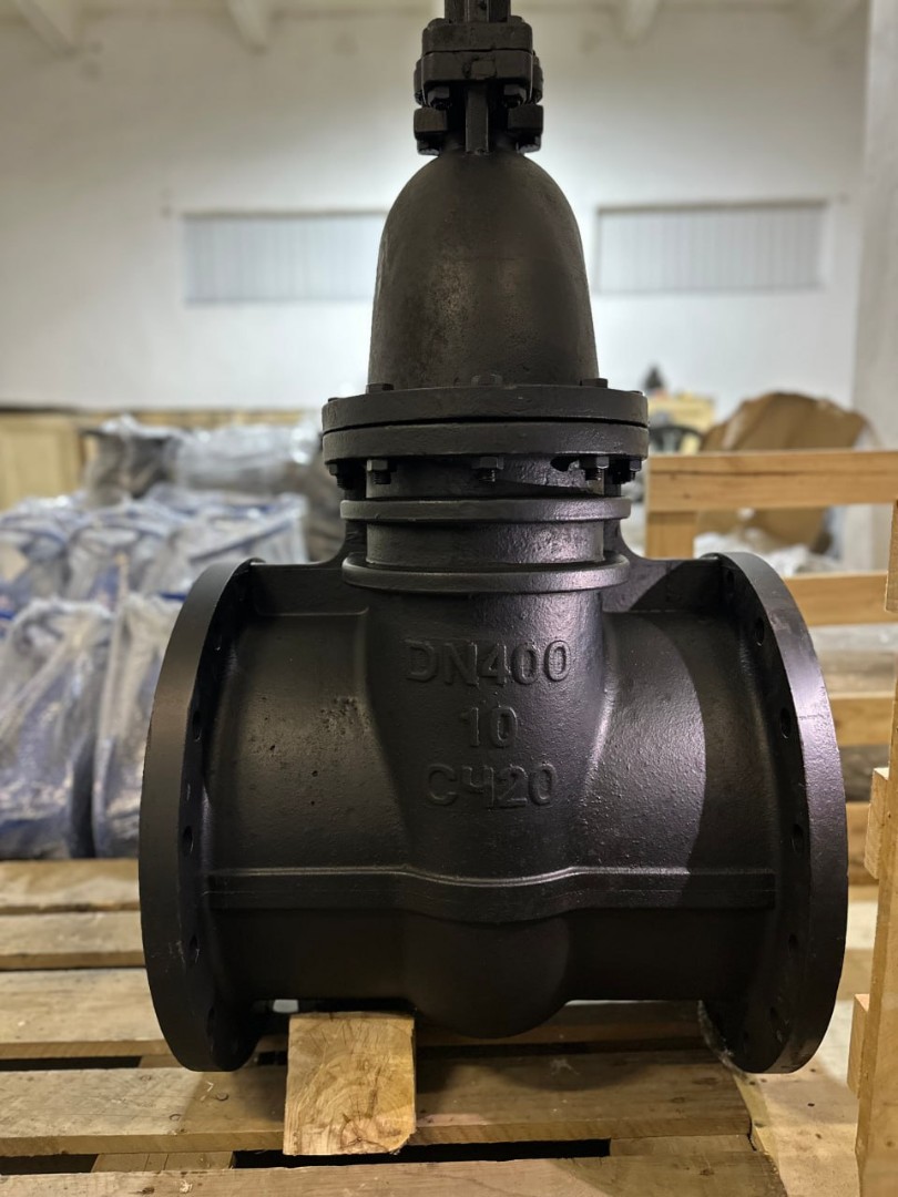 Задвижка чугунная 30ч6бр Ду 400 Ру 10 , гайка ходовая - латунь, материал шпинделя - сталь 20х13.