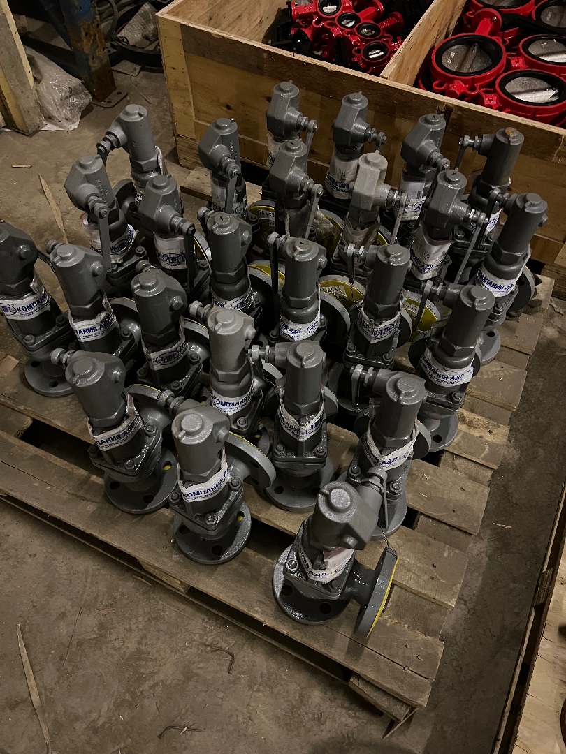 Предлагаем новые предохранительные чугунные клапаны фланцевые угловые, 25 штук в наличии, цена 25 000 рублей за штуку.