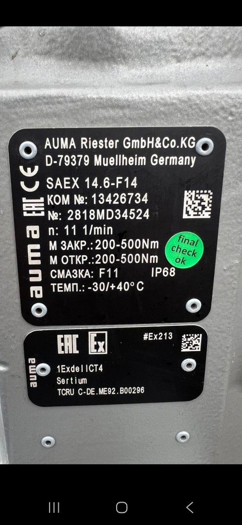 1.AUMA SAEX 10.2 45 обор. с Блоком ACEXC 01.2 -4 шт. по 260000 руб/шт 2.AUMA SAEX 14.2 8 обор. с Блоком ACEXC 01.2 -2 шт. по 280000 руб/шт 3.AUMA SAEX 14.6 11 обор. с Блоком ACEXC 01.2 -2 шт. по 299000 руб/шт
