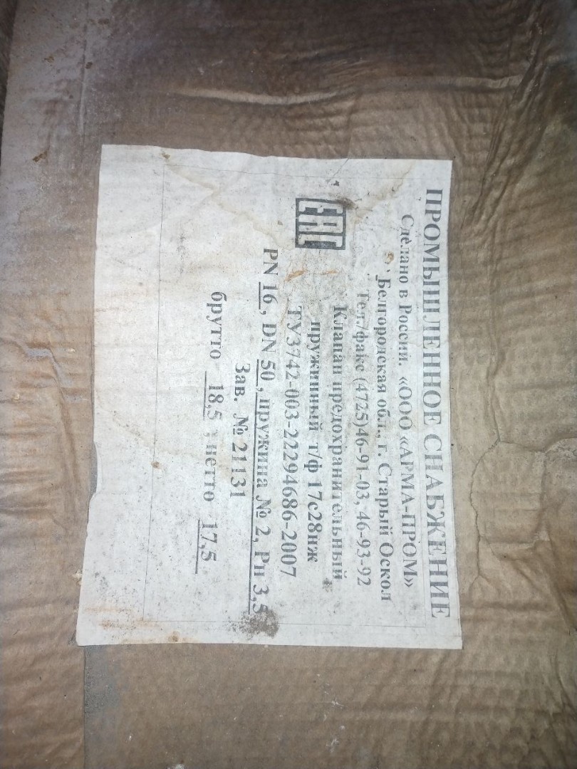 Клапан предохранительный КВО7271 (СБ0001/ТРЖК-3) Ду20, Рр2,5 (г. Омск)Соломеин Арсений