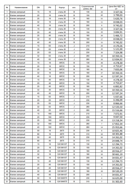 2.Задвижки 30ЛС941нж, СТАЛЬ 20Г, Ду250 Ру16, производство МУРОМ, 2штуки Цена 75тр 3.Клапан обратный 19ЛС53нж, сталь 20ГЛ, Ду150 Ру40 БАЗ 1штука Цена 45тр 4.Клапан обратный 19ЛС53нж, сталь 20ГЛ, Ду200 Ру40 БАЗ 3штуки Цена 75тр в наличии в Ижевске. отправим любой транспортной компанией, Можем сработать перечислением с НДС ООО ТК "Экора" г.Ижевск |