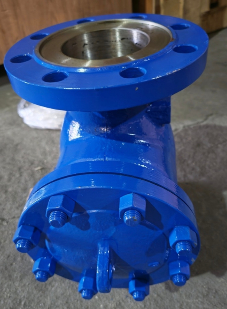 Под крышкой в корпусе сделаны выступы-ушки с отверстием. В него вставлена стальная (20Х13) ось для закрепления качающейся поворотной захлопки (Ст20ГЛ, 09Г2С). Ось расположена намного выше центра захлопки, это дает возможность ей функционировать автоматически под своим весом.