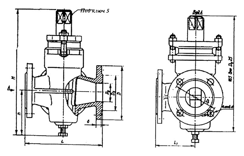 | Таблица фигура | Номер чертежа | Усл. обозн. | Присоединение | Привод | Ду | L | L1 | H | H1 | Масса |